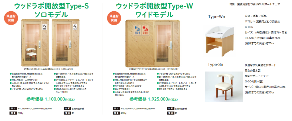 国産材を利活して製品開発した「ウッドラボシリーズ」は、あらゆる空間環境で活用できます。ビジネス現場では、増改築や移転ではなくコワーキングブース増でスペース活用。図書室等文化施設など公共の場では、待合室等のスペース利活で「置型授乳室」「高齢者向け休憩室」など多目的なパーソナルスペースの設置も可能です。 |