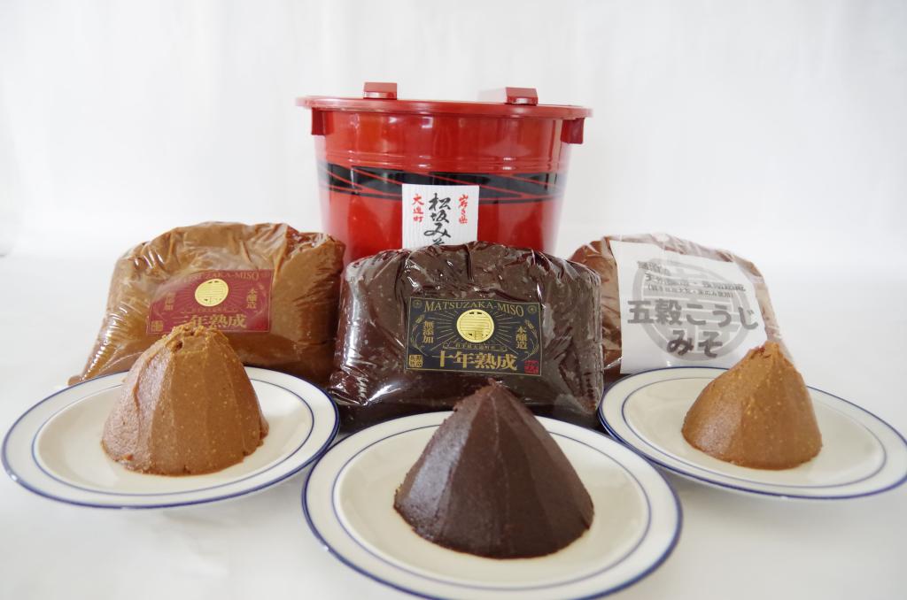 田舎みそ(松坂みそ)、十年熟成みそ、五穀こうじみそ、なんばんみそ、その他 |